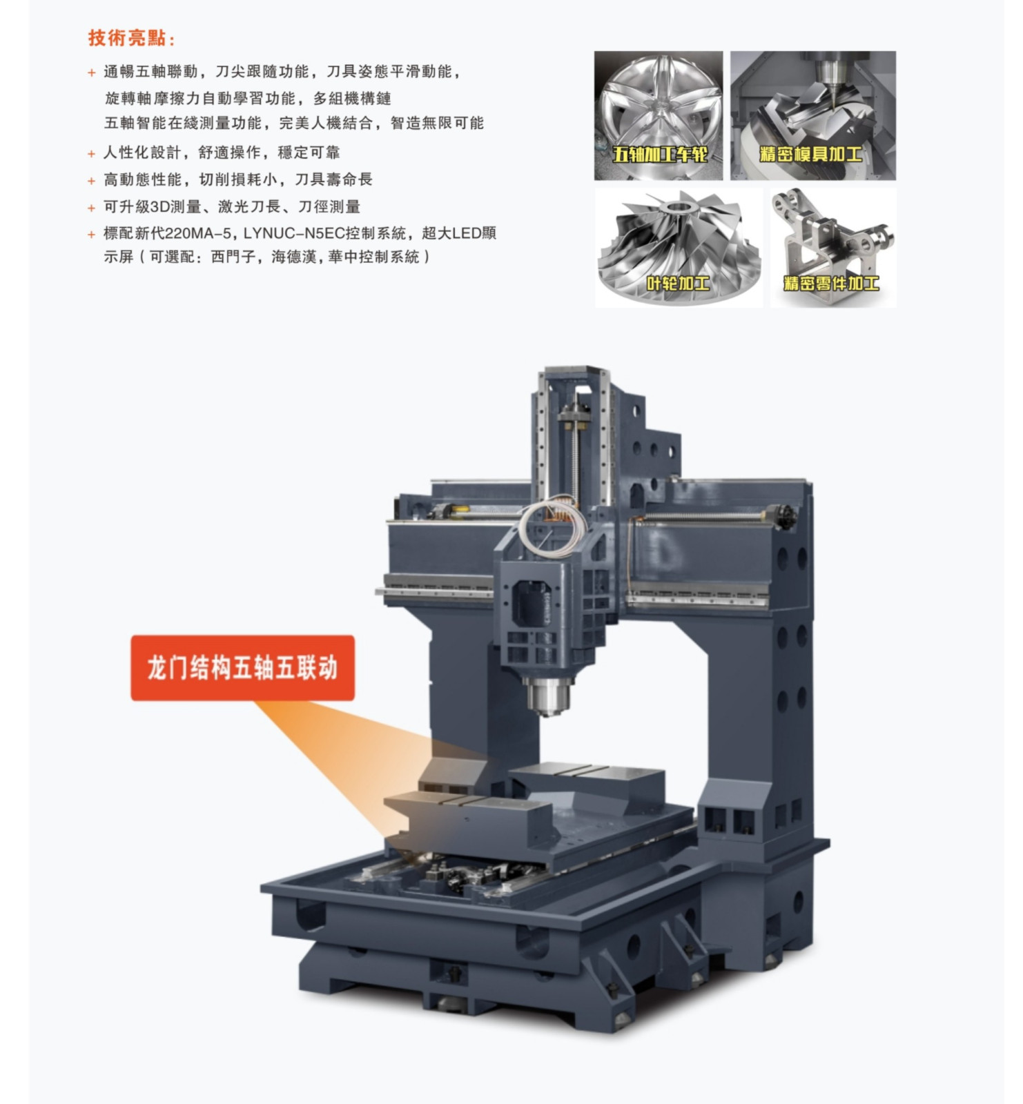 我們致力於打造完整的高端金屬切削機床產業鏈,給客戶提供高效的技術支持。目前擁有以下幾大類產品:五軸加工中心、立式加工中心、臥式加工中心、龍門加工中心、鑽攻中心、數控雕銑機、車銑複合中心、CNC數控車床等。產品主要應用於汽車製造、AI人工智慧、5G通訊、3C電子、智能穿戴、新能源設備、醫療器械、高精密模具、機械部件、自動化配件、運動器材等行業。以其高品質、高精度、高可靠性,技術先進性和實用性,滿足各行業加工需求。