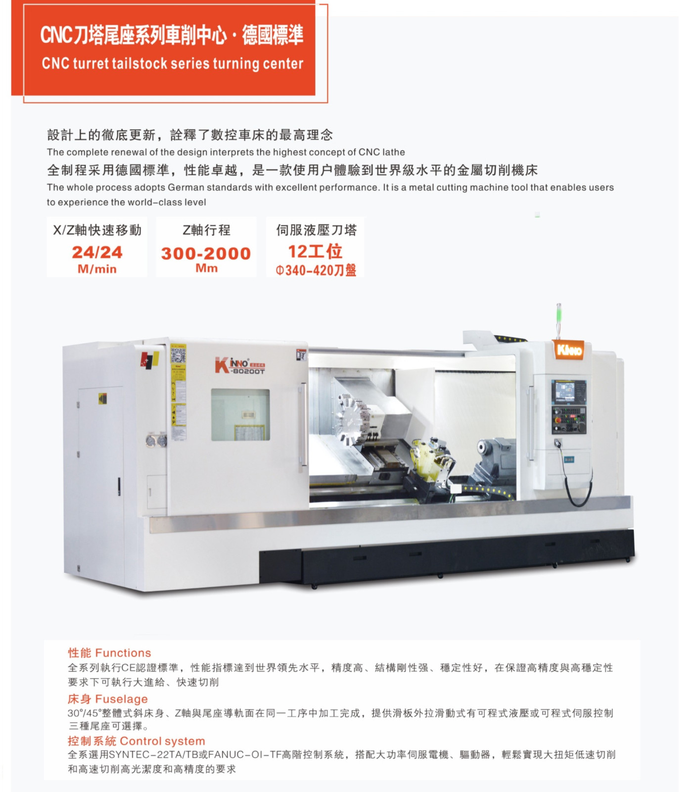 CNC刀塔尾座系列车削中心德国标准K-80200T